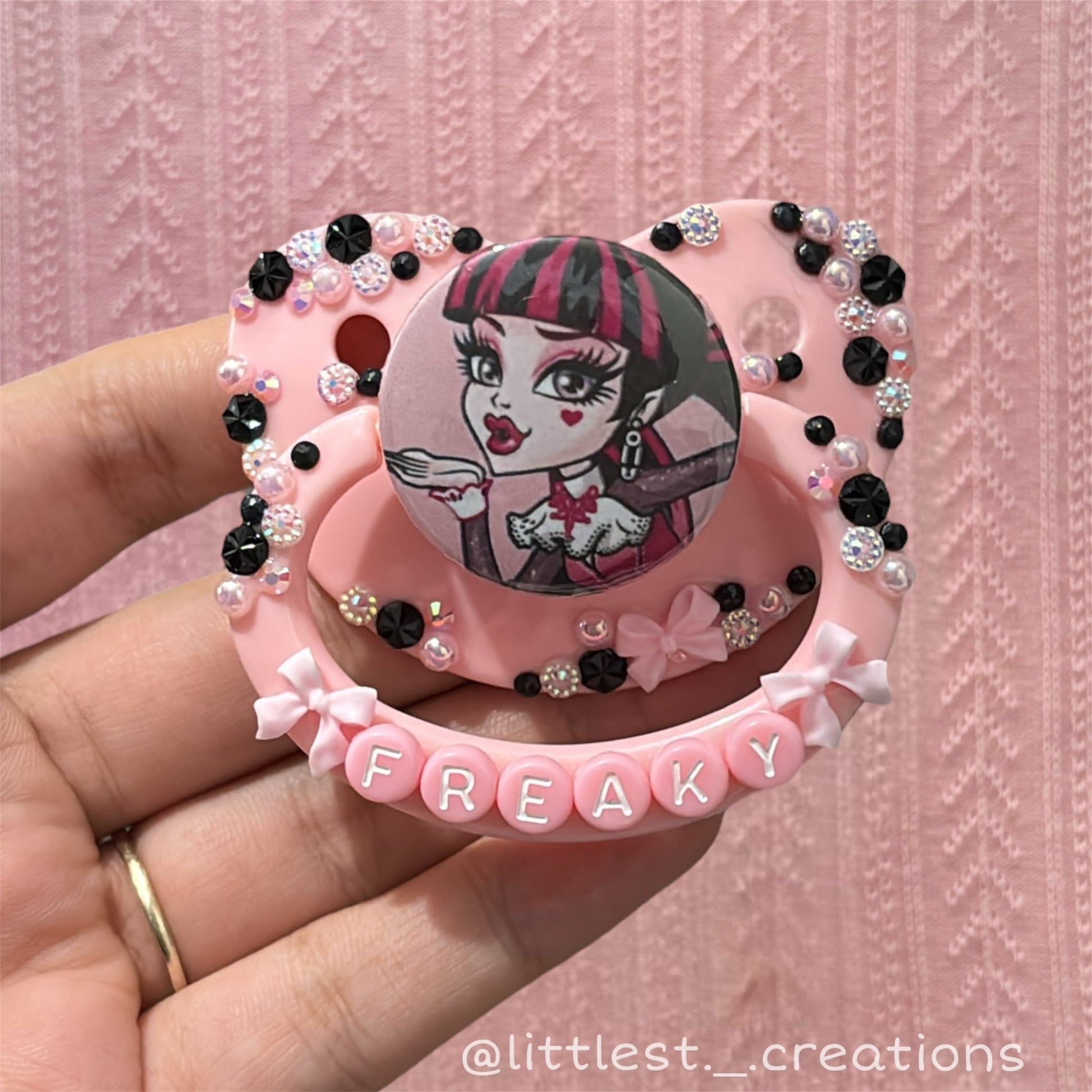 Deco adult pacifier available for remakes! this product will be made after ordering and could take 1 day to 2 weeks to complete at the very maximum! please dm me at @littlest._.creations for any questions!