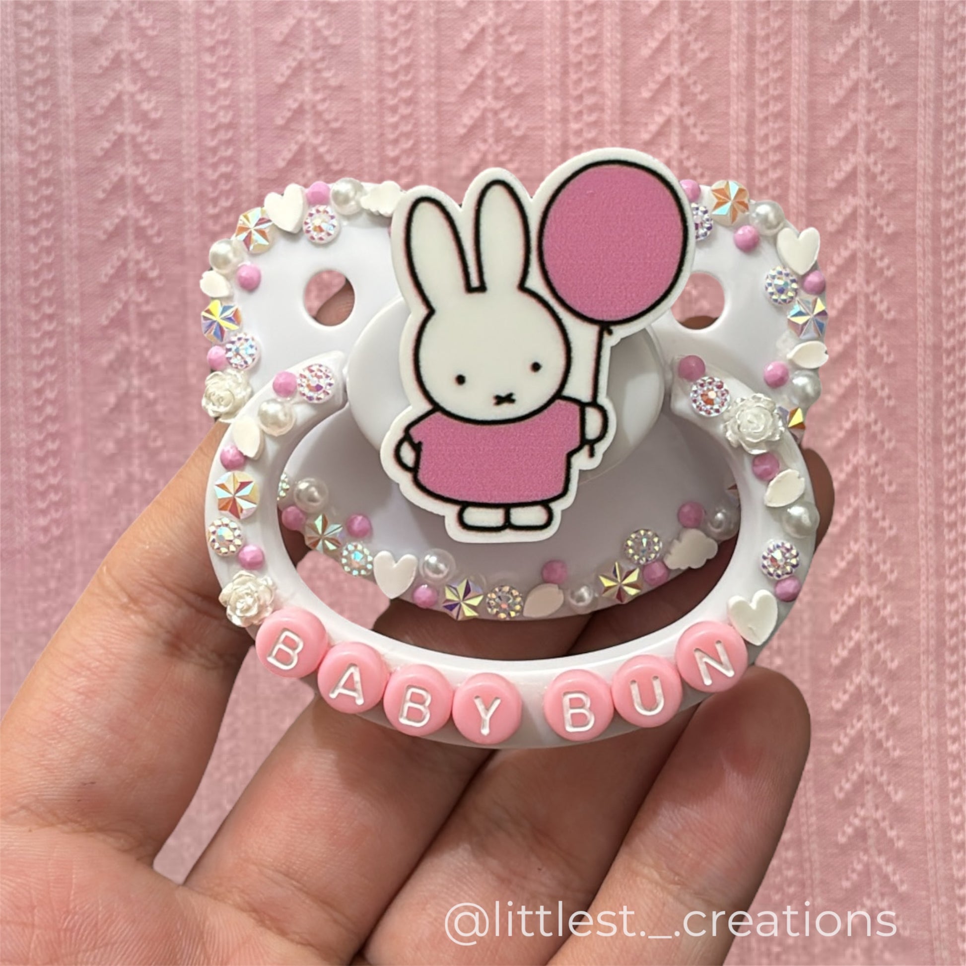Deco adult pacifier available for remakes! this product will be made after ordering and could take 1 day to 2 weeks to complete at the very maximum! please dm me at @littlest._.creations for any questions!