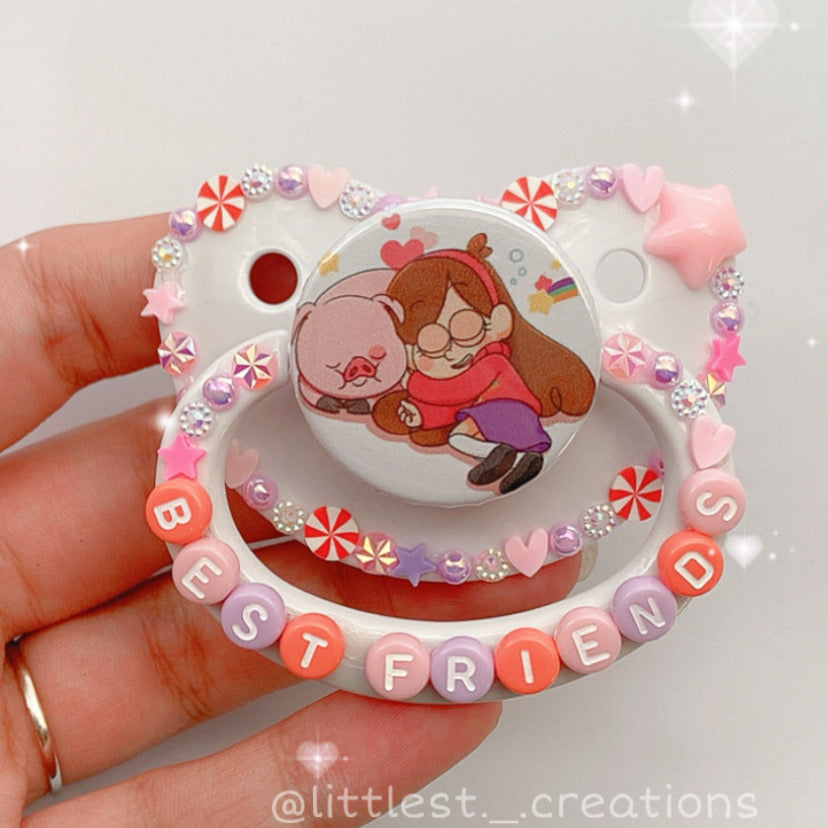 Deco adult pacifier available for remakes! this product will be made after ordering and could take 1 day to 2 weeks to complete at the very maximum! please dm me at @littlest._.creations for any questions!