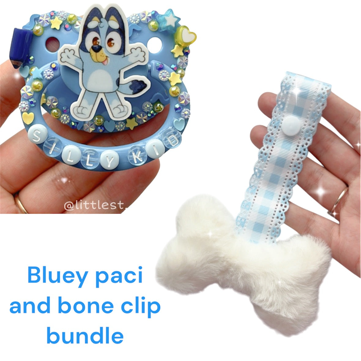 Bluey paci and bone clip bundle!