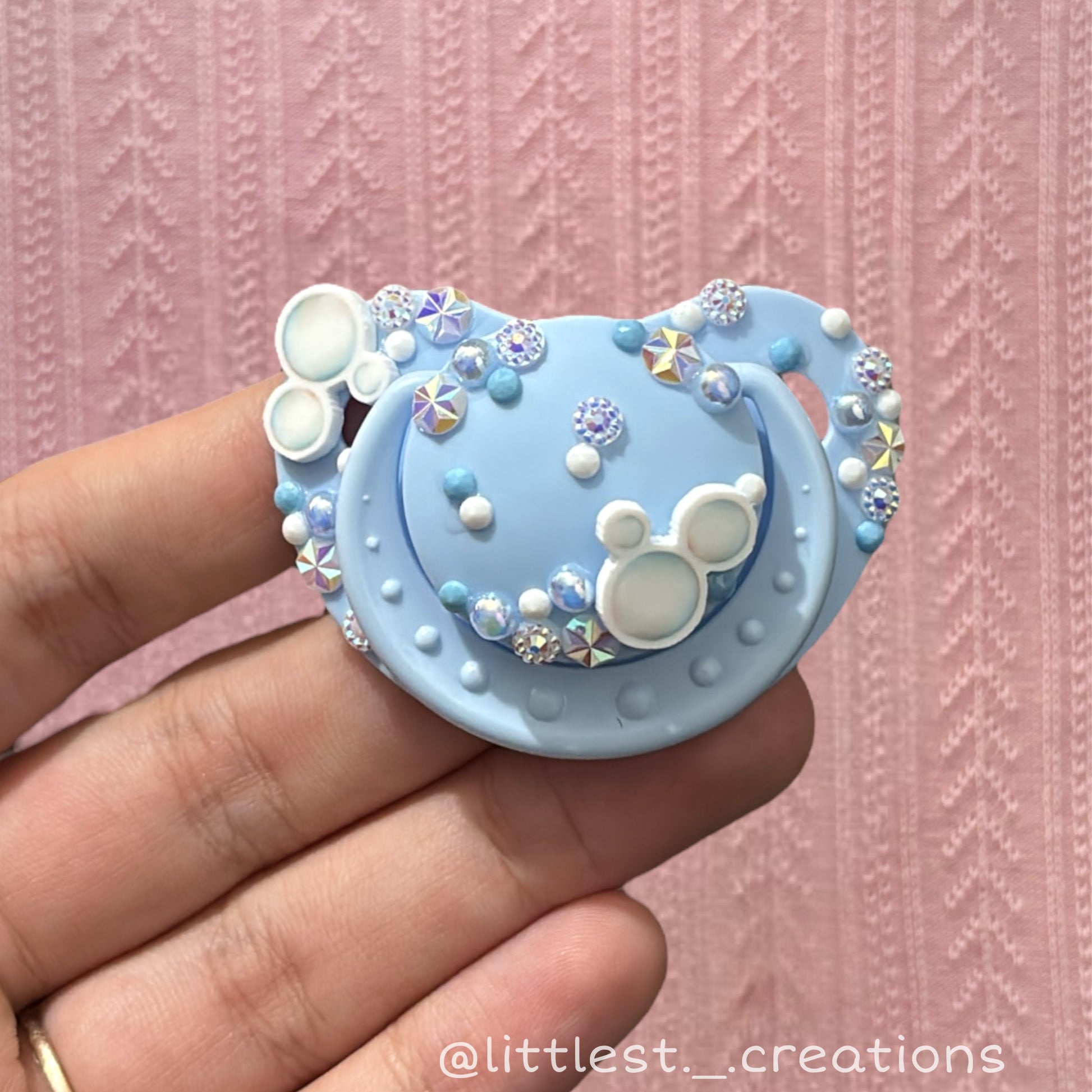 Deco adult pacifier available for remakes! this product will be made after ordering and could take 1 day to 2 weeks to complete at the very maximum! please dm me at @littlest._.creations for any questions!