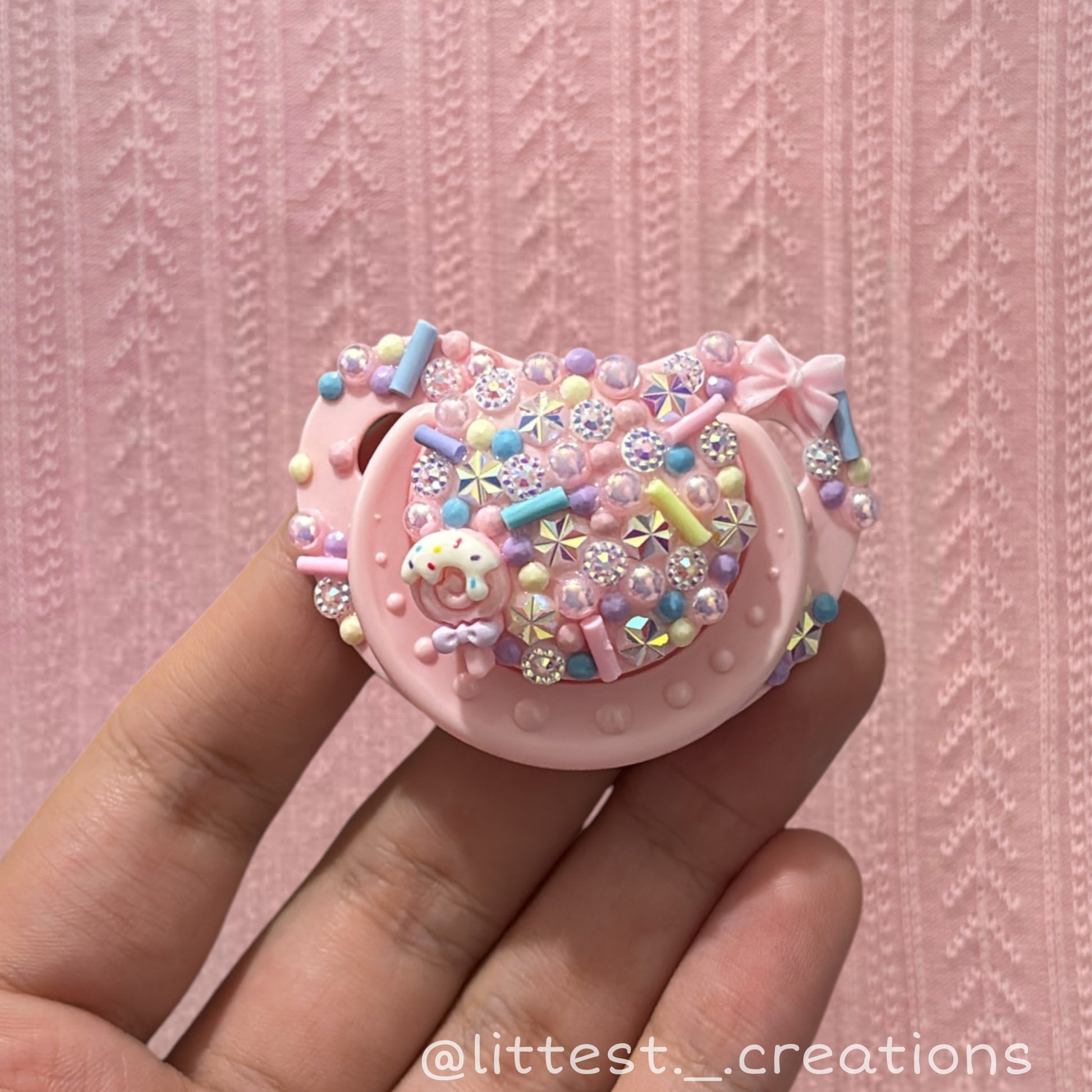 Deco adult pacifier available for remakes! this product will be made after ordering and could take 1 day to 2 weeks to complete at the very maximum! please dm me at @littlest._.creations for any questions!