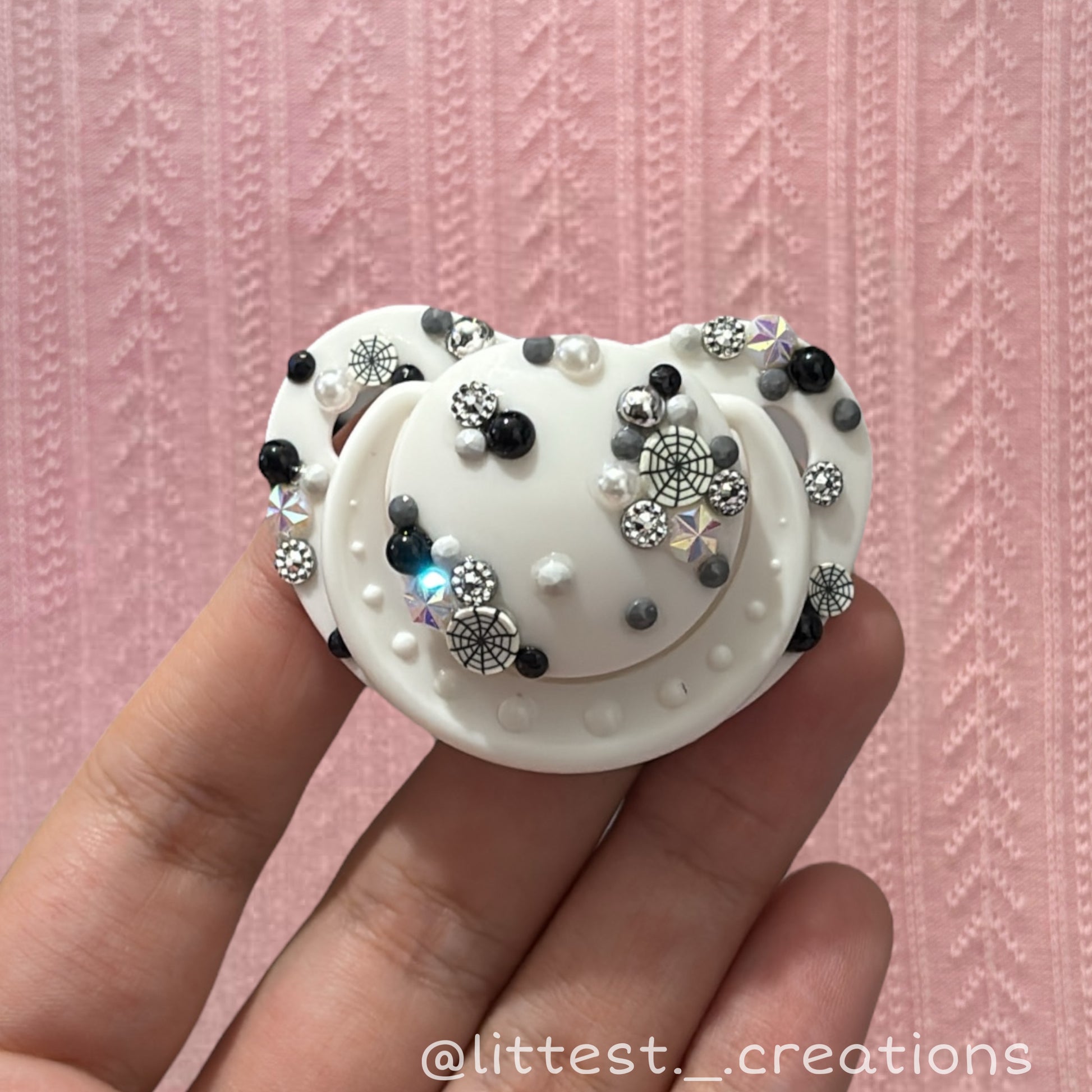 Deco adult pacifier available for remakes! this product will be made after ordering and could take 1 day to 2 weeks to complete at the very maximum! please dm me at @littlest._.creations for any questions!