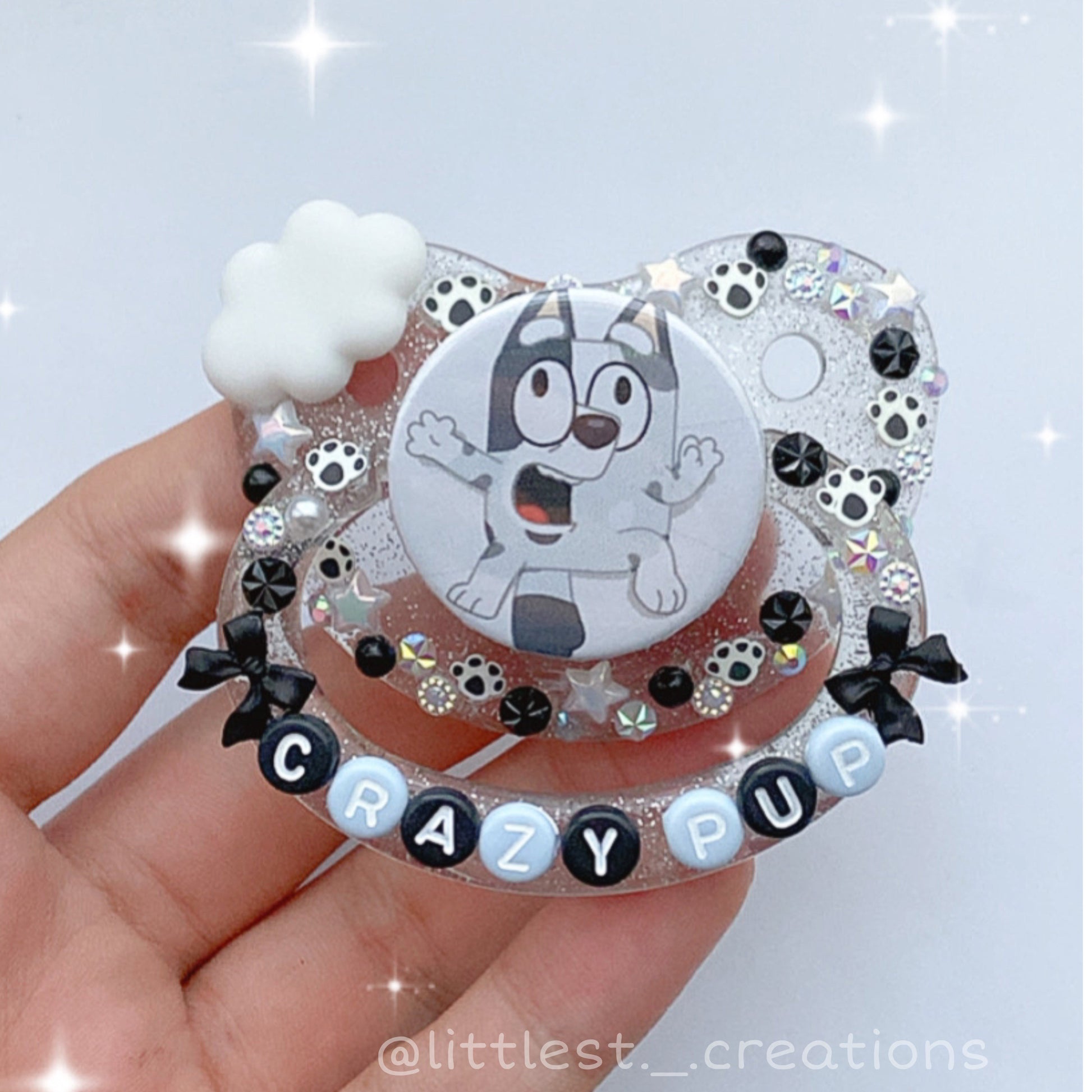 Deco adult pacifier available for remakes! this product will be made after ordering and could take 1 day to 2 weeks to complete at the very maximum! please dm me at @littlest._.creations for any questions!