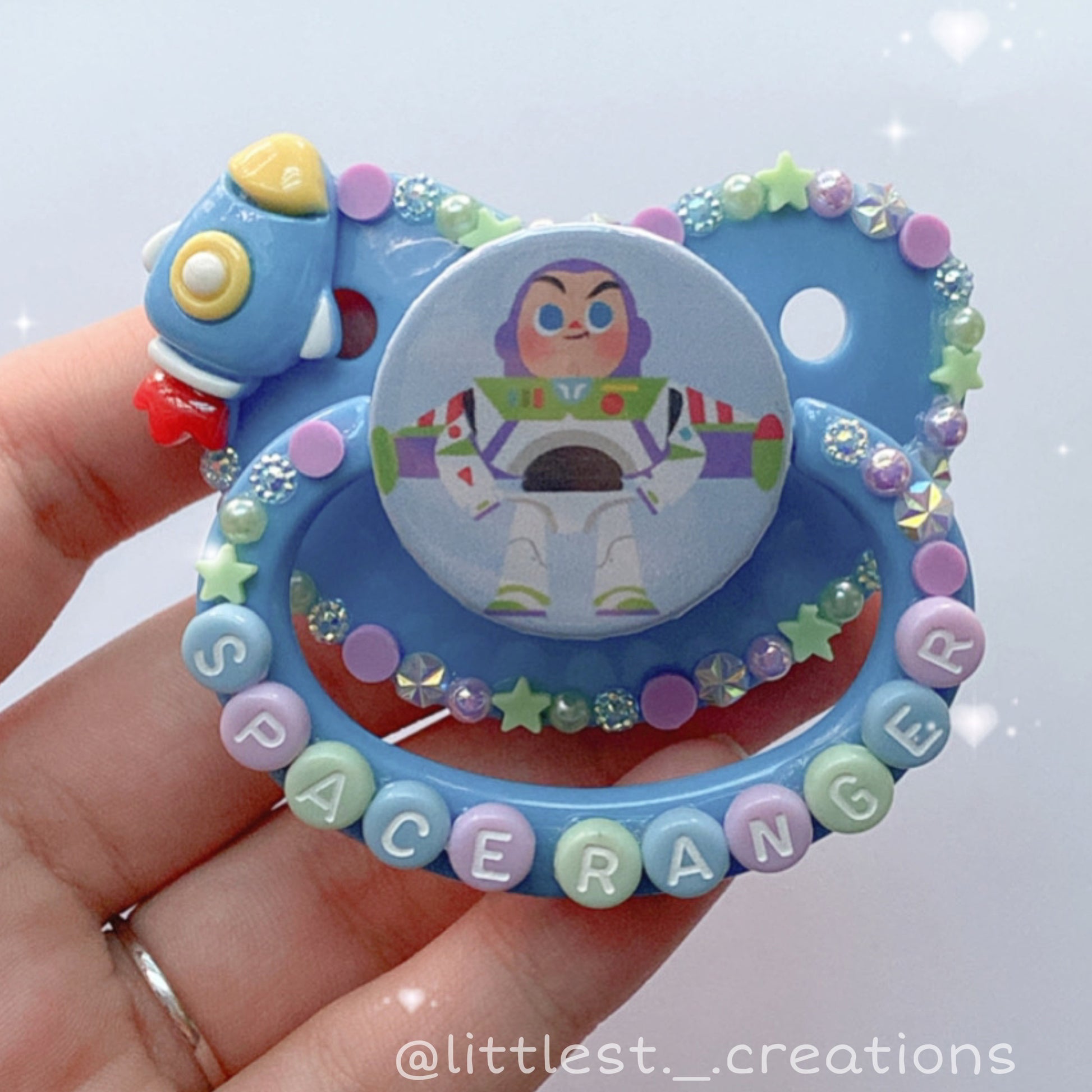 Deco adult pacifier available for remakes! this product will be made after ordering and could take 1 day to 2 weeks to complete at the very maximum! please dm me at @littlest._.creations for any questions!