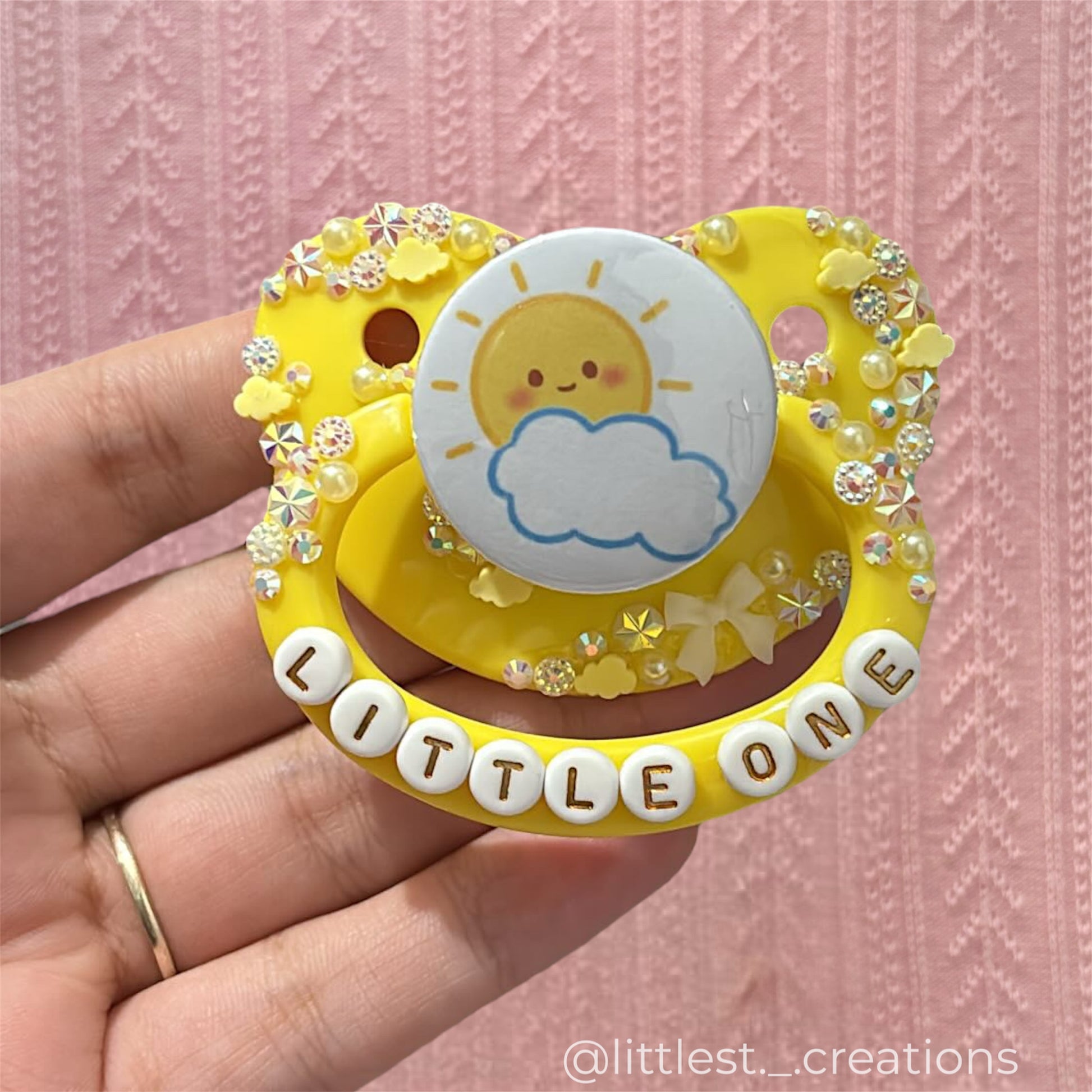 Deco adult pacifier available for remakes! this product will be made after ordering and could take 1 day to 2 weeks to complete at the very maximum! please dm me at @littlest._.creations for any questions!
