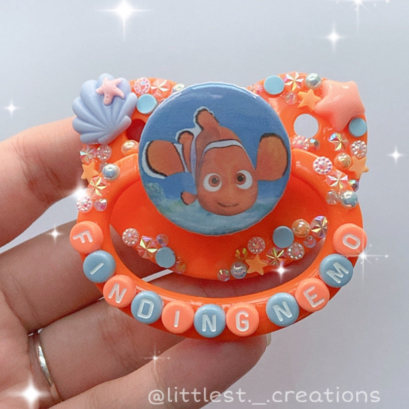 Deco adult pacifier available for remakes! this product will be made after ordering and could take 1 day to 2 weeks to complete at the very maximum! please dm me at @littlest._.creations for any questions!