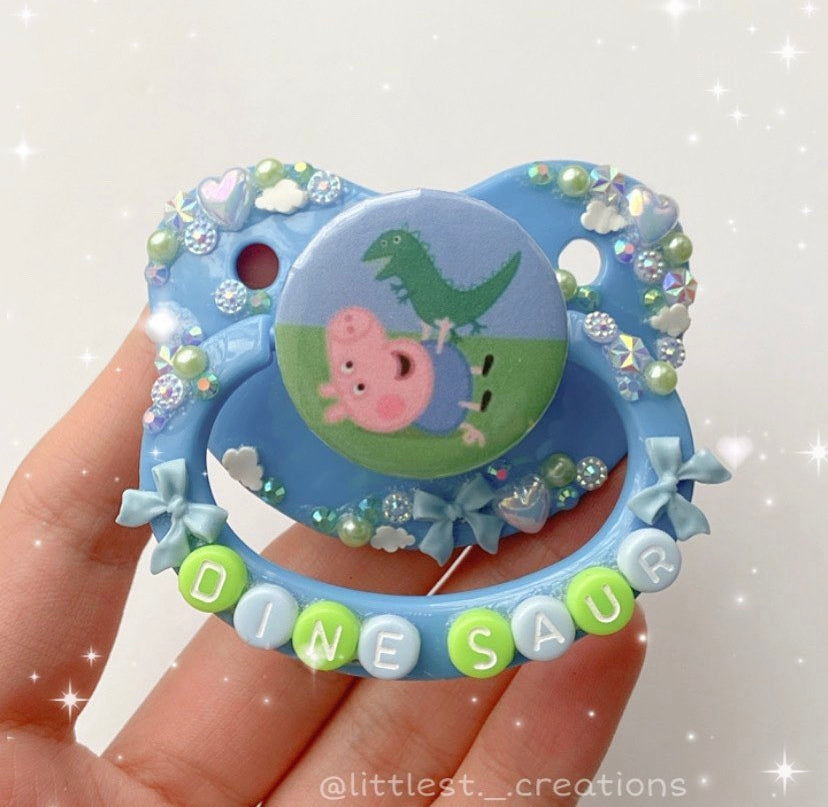 Deco adult pacifier available for remakes! this product will be made after ordering and could take 1 day to 2 weeks to complete at the very maximum! please dm me at @littlest._.creations for any questions!