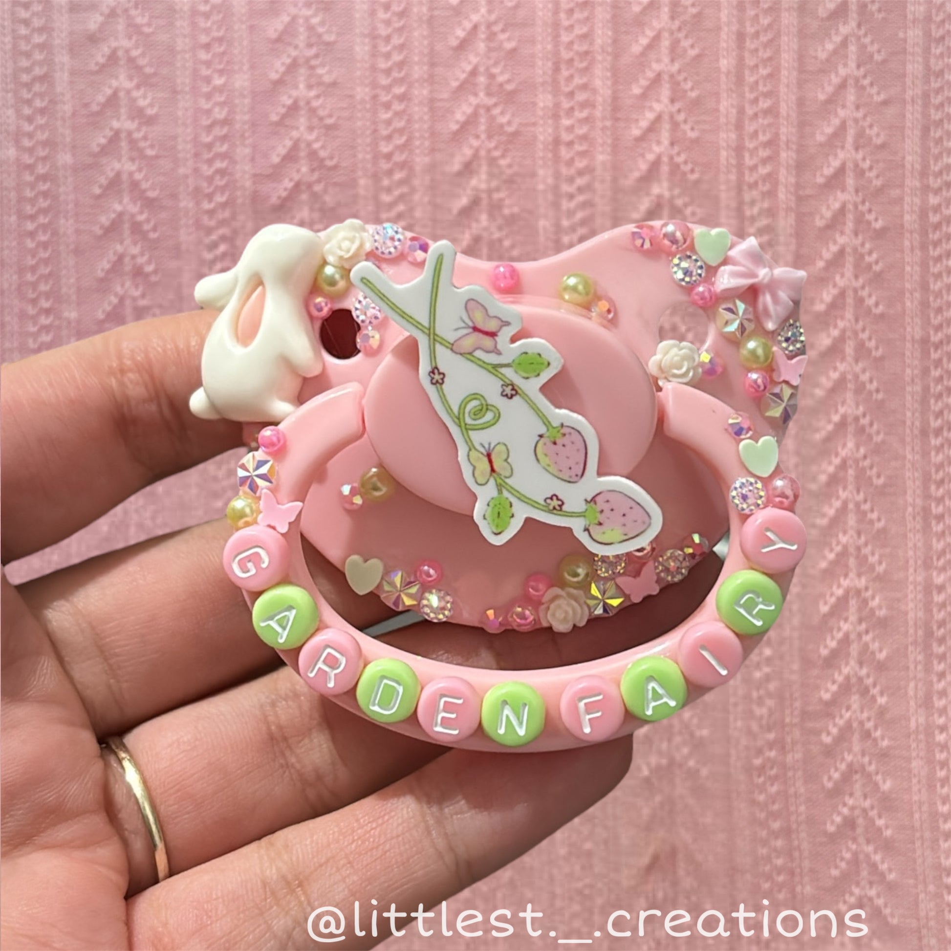 Deco adult pacifier available for remakes! this product will be made after ordering and could take 1 day to 2 weeks to complete at the very maximum! please dm me at @littlest._.creations for any questions!