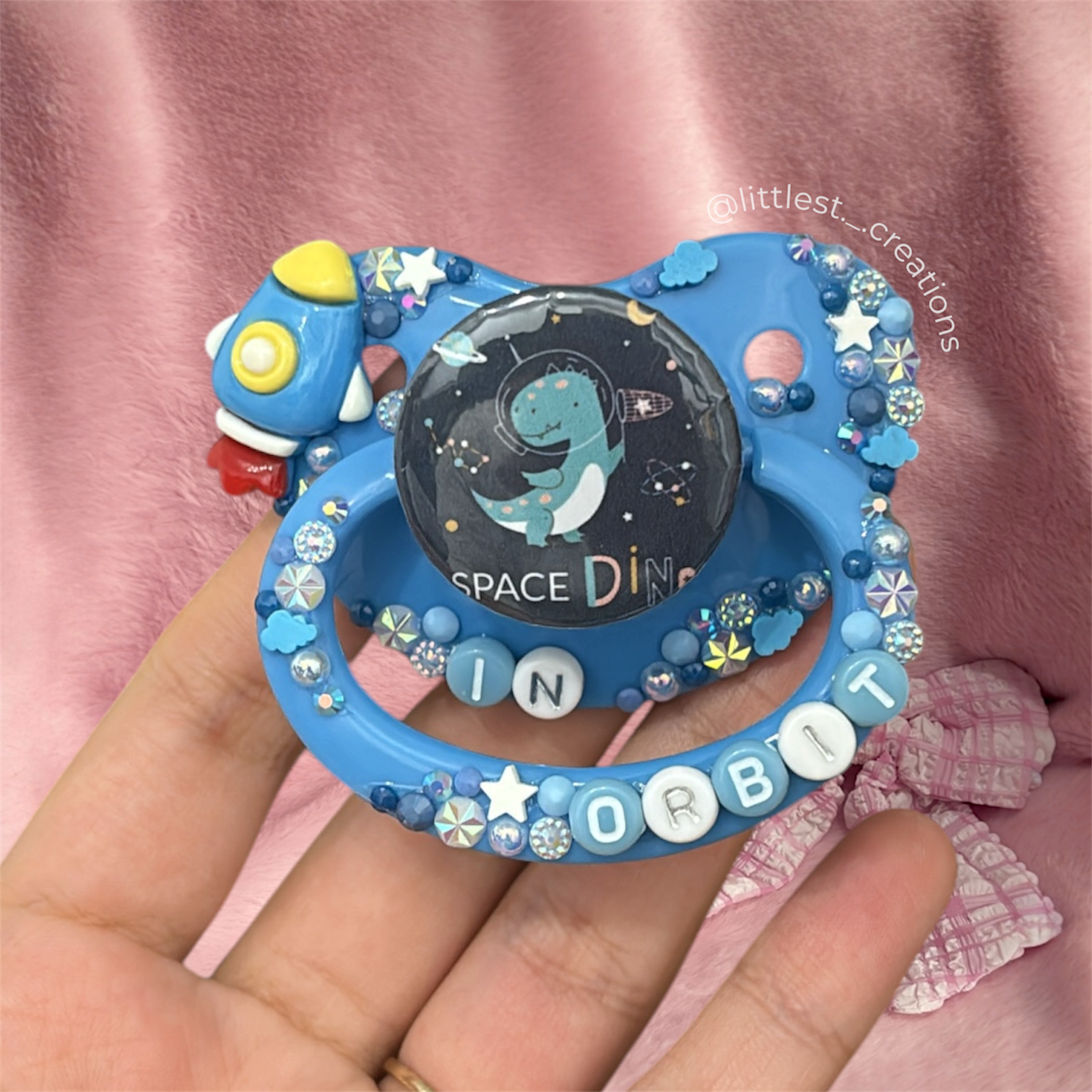 Deco adult pacifier ready to be shipped! this product will could take up to 7 days to ship at the maximum! please dm me at @littlest._.creations for any questions!