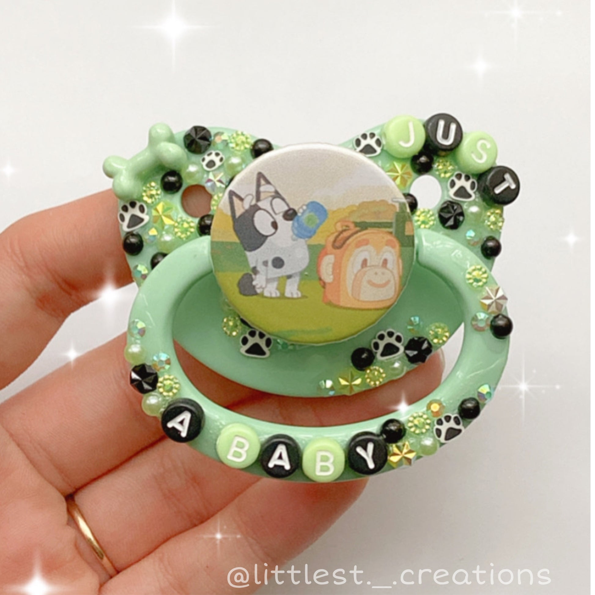 Disclaimer! when ordering a remake paci with charms or mixed bases, please leave a note if you’d like it to be absolutely exact which means i will need extra time to order charms i do not have ext which may take 1-3 weeks longer! If you’re okay with a remake which the same wording, same deco, same center, same colour scheme but maybe the handle and base colours being swapped or similar themed charms, there’s no need to leave a note!