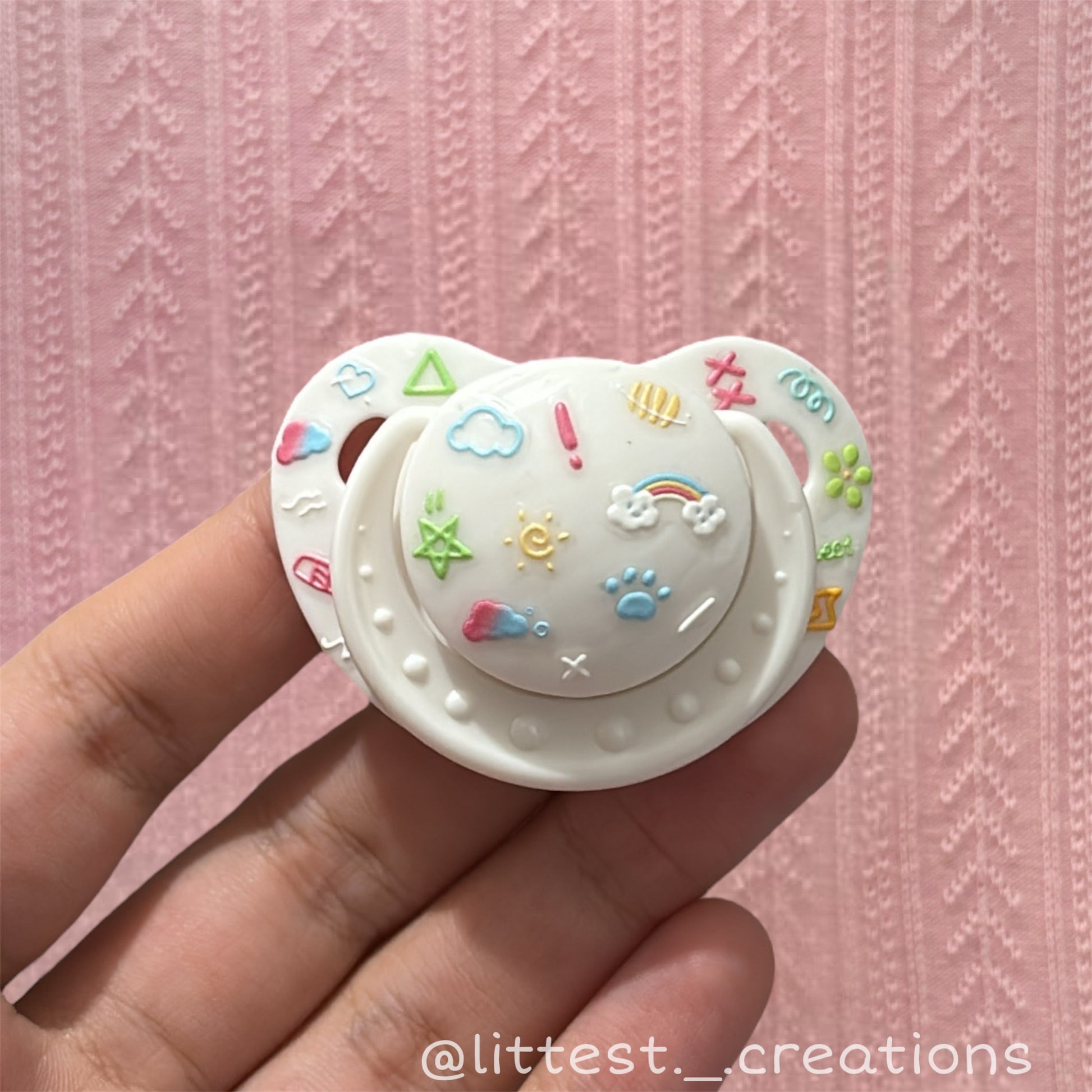 i price my items by the time and effort used to make the pacifier along with cost of supplies, any planars/centers i use have been either bought from various supply shops or images found online, they are not made by me and i do not profit from them ❤️