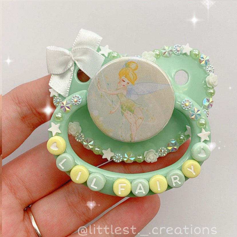 Deco adult pacifier available for remakes! this product will be made after ordering and could take 1 day to 2 weeks to complete at the very maximum! please dm me at @littlest._.creations for any questions!