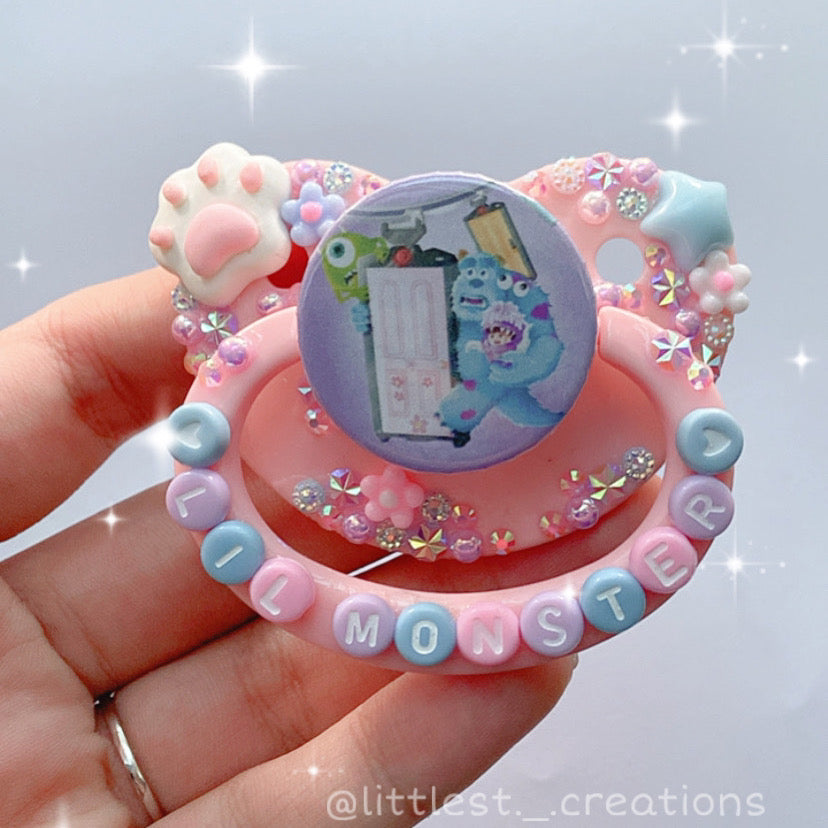 Deco adult pacifier available for remakes! this product will be made after ordering and could take 1 day to 2 weeks to complete at the very maximum! please dm me at @littlest._.creations for any questions!