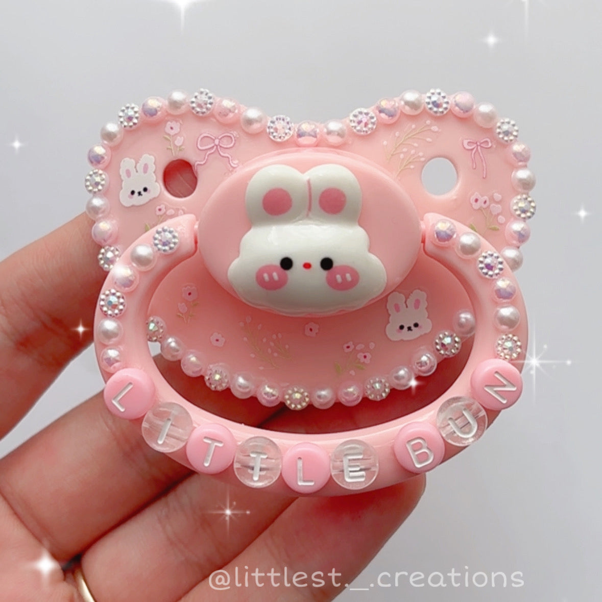 Deco adult pacifier available for remakes! this product will be made after ordering and could take 1 day to 2 weeks to complete at the very maximum! please dm me at @littlest._.creations for any questions!