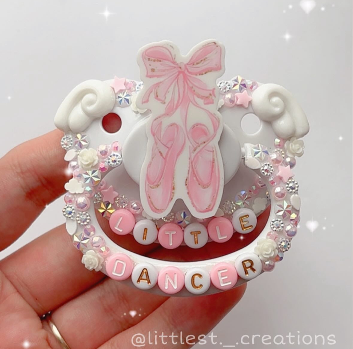Deco adult pacifier available for remakes! this product will be made after ordering and could take 1 day to 2 weeks to complete at the very maximum! please dm me at @littlest._.creations for any questions!
