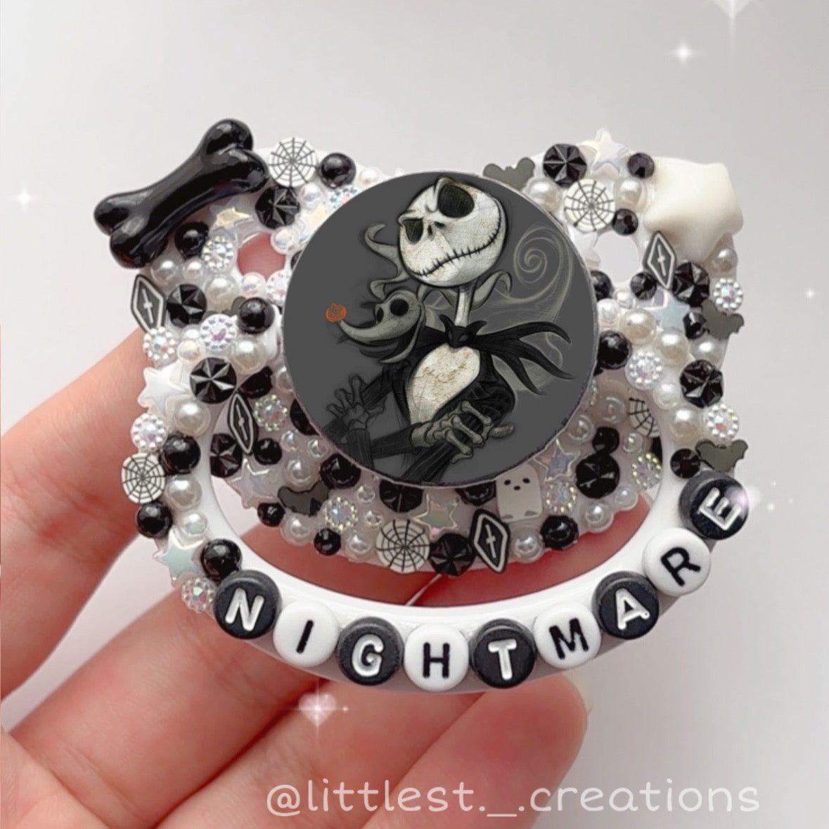 Deco adult pacifier available for remakes! this product will be made after ordering and could take 1 day to 2 weeks to complete at the very maximum! please dm me at @littlest._.creations for any questions!