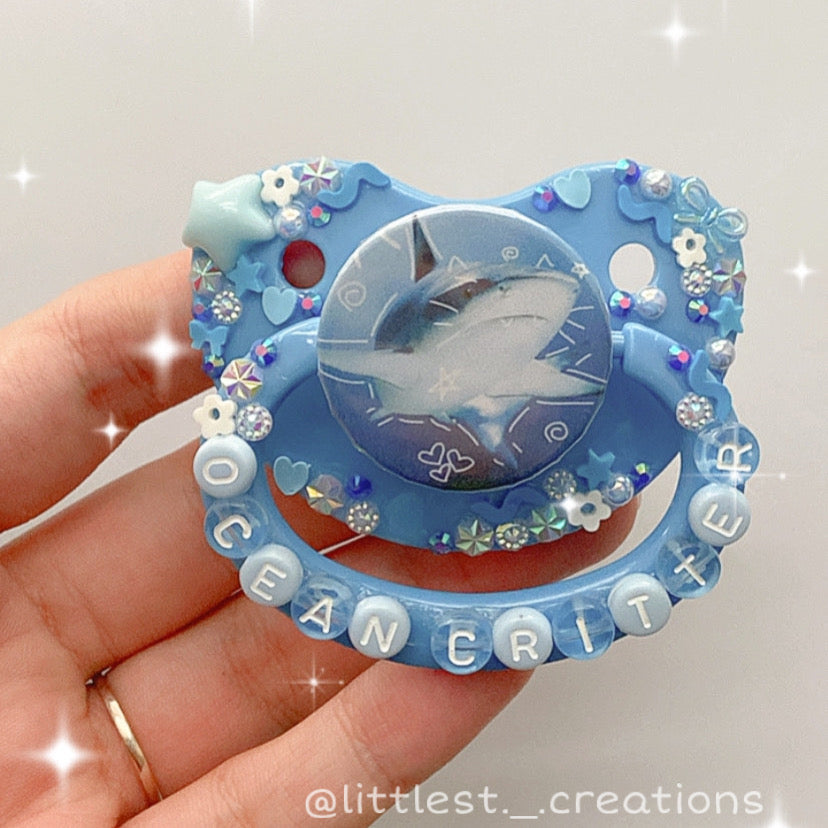 Deco adult pacifier available for remakes! this product will be made after ordering and could take 1 day to 2 weeks to complete at the very maximum! please dm me at @littlest._.creations for any questions!