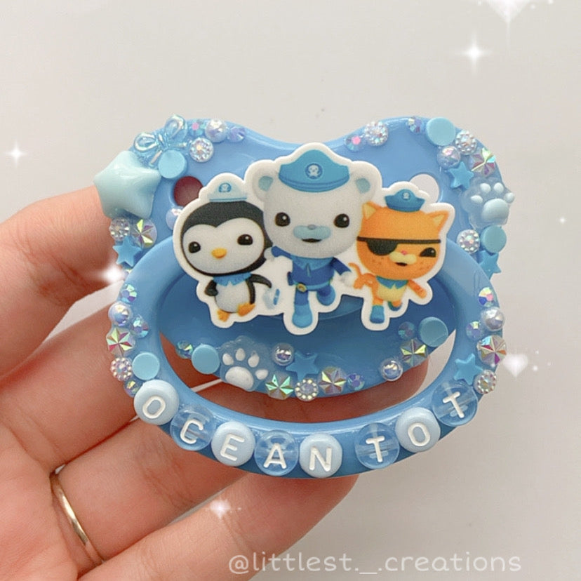 Deco adult pacifier available for remakes! this product will be made after ordering and could take 1 day to 2 weeks to complete at the very maximum! please dm me at @littlest._.creations for any questions!