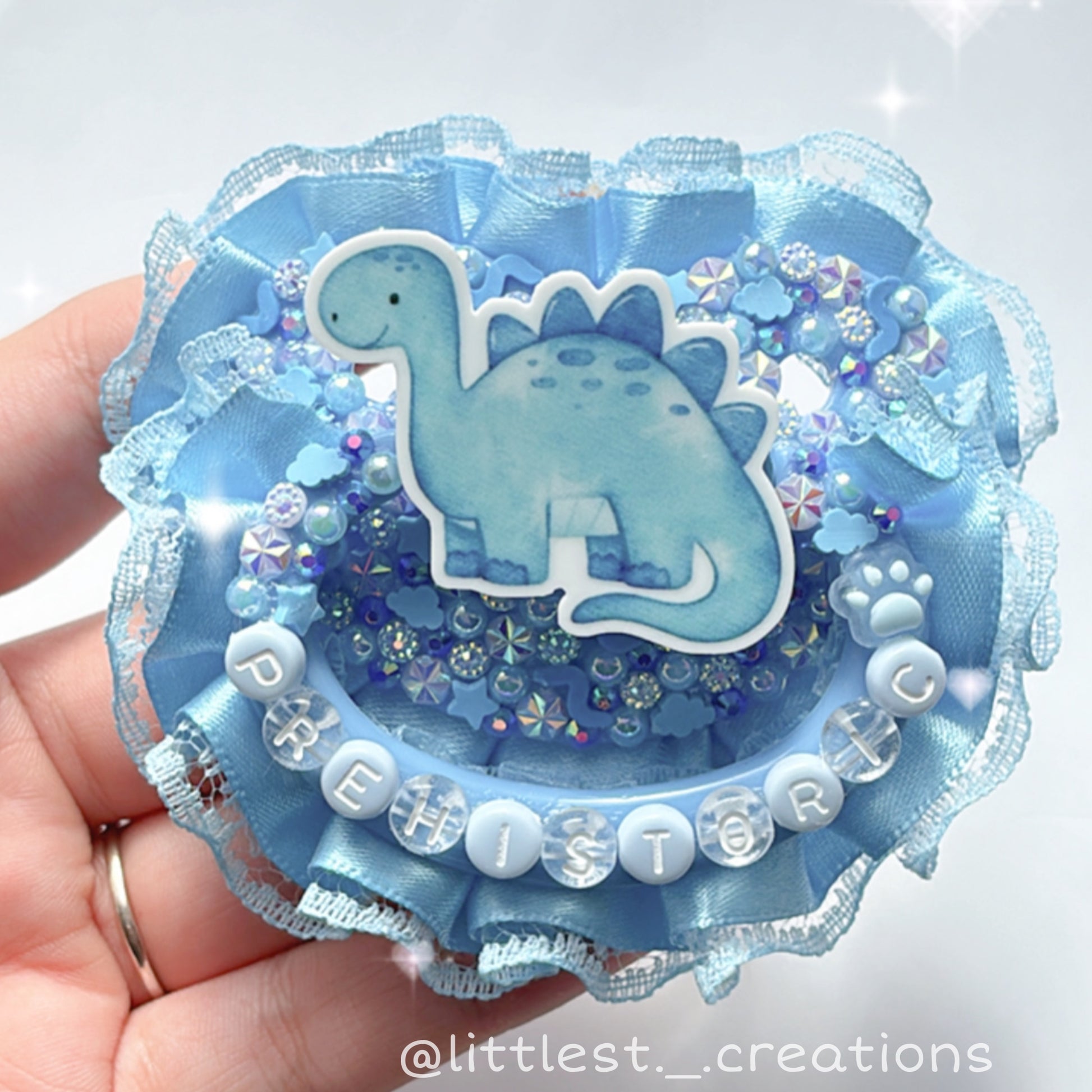 Deco adult pacifier available for remakes! this product will be made after ordering and could take 1 day to 2 weeks to complete at the very maximum! please dm me at @littlest._.creations for any questions!