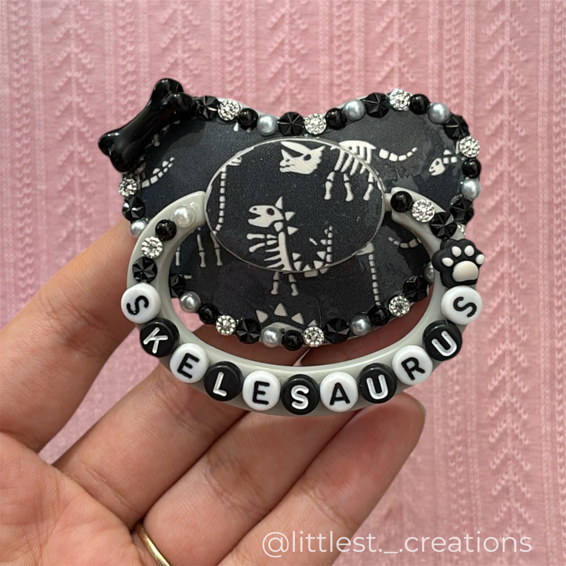 this paci is sealed with resin! Deco adult pacifier available for remakes! this product will be made after ordering and could take 1 day to 2 weeks to complete at the very maximum! please dm me at @littlest._.creations for any questions!
