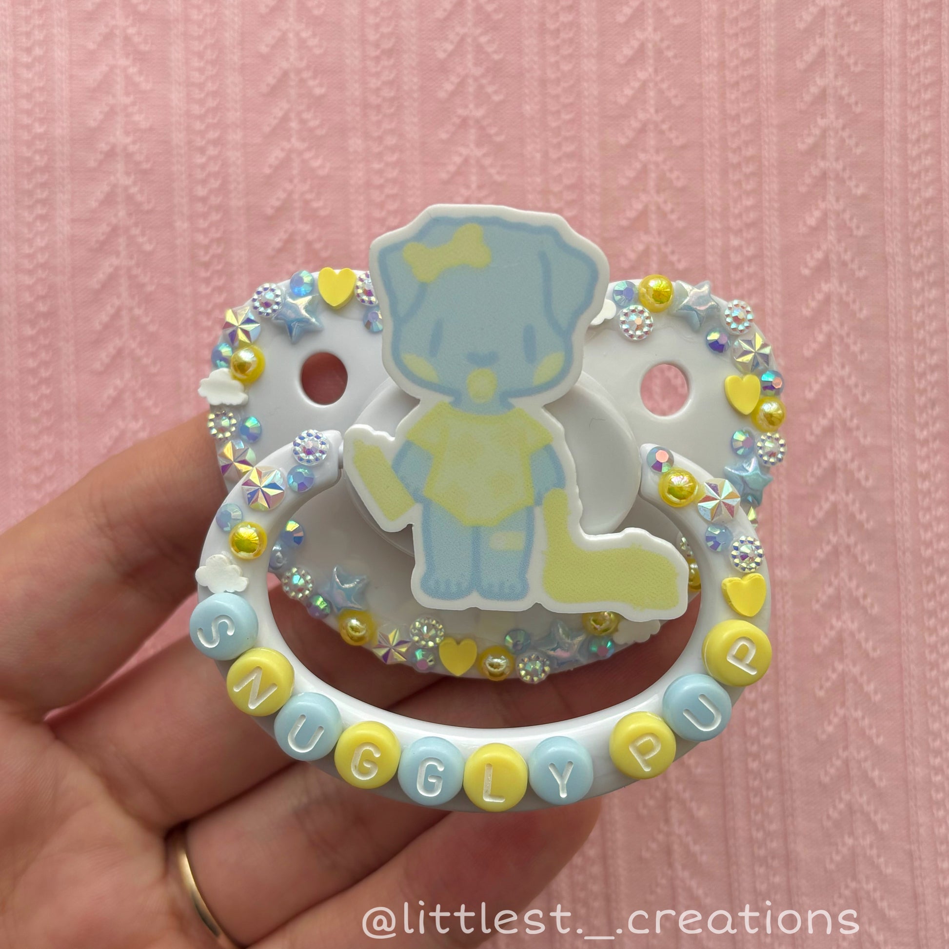 Disclaimer! when ordering a remake paci with charms or mixed bases, please leave a note if you’d like it to be absolutely exact which means i will need extra time to order charms i do not have ext which may take 1-3 weeks longer! If you’re okay with a remake which the same wording, same deco, same center, same colour scheme but maybe the handle and base colours being swapped or similar themed charms, there’s no need to leave a note!