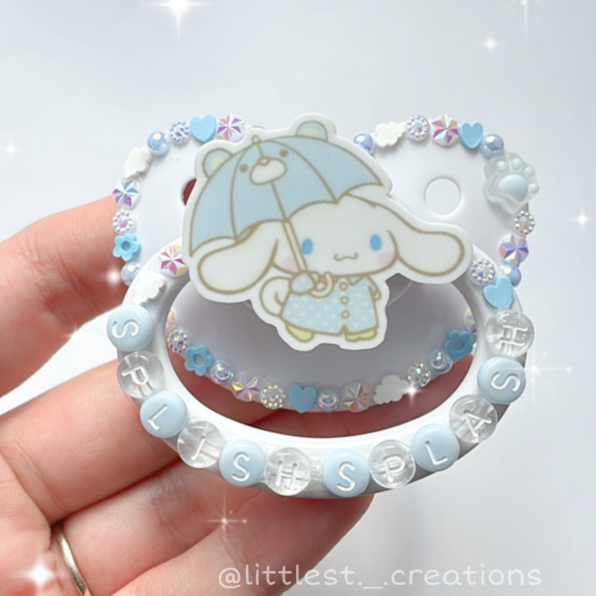 Disclaimer! when ordering a remake paci with charms or mixed bases, please leave a note if you’d like it to be absolutely exact which means i will need extra time to order charms i do not have ext which may take 1-3 weeks longer! If you’re okay with a remake which the same wording, same deco, same center, same colour scheme but maybe the handle and base colours being swapped or similar themed charms, there’s no need to leave a note!