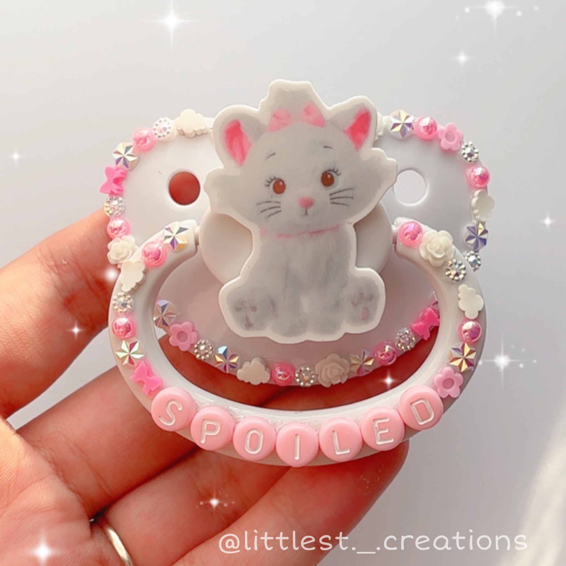 Deco adult pacifier available for remakes! this product will be made after ordering and could take 1 day to 2 weeks to complete at the very maximum! please dm me at @littlest._.creations for any questions!