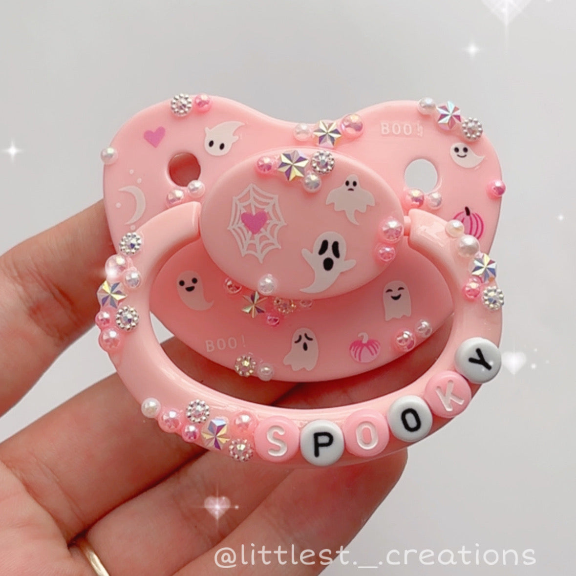 Deco adult pacifier available for remakes! this product will be made after ordering and could take 1 day to 2 weeks to complete at the very maximum! please dm me at @littlest._.creations for any questions!