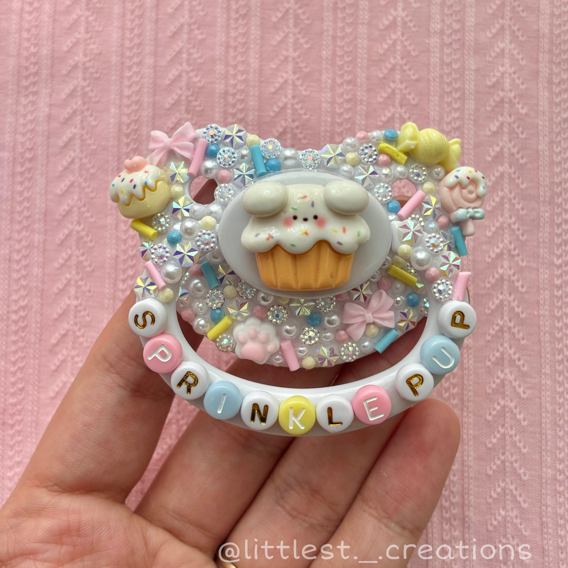 Deco adult pacifier available for remakes! this product will be made after ordering and could take 1 day to 2 weeks to complete at the very maximum! please dm me at @littlest._.creations for any questions!