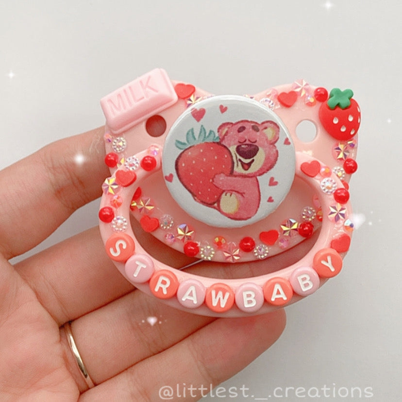 Deco adult pacifier available for remakes! this product will be made after ordering and could take 1 day to 2 weeks to complete at the very maximum! please dm me at @littlest._.creations for any questions!