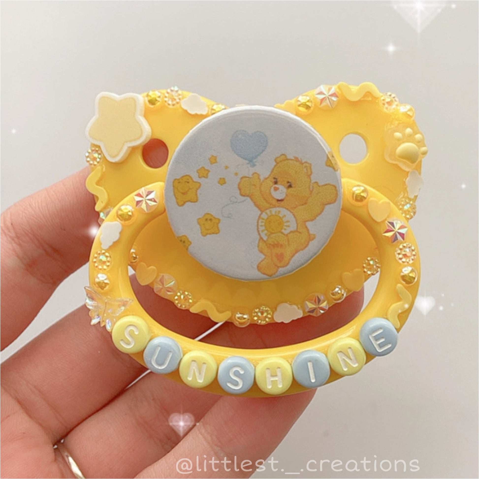 Deco adult pacifier available for remakes! this product will be made after ordering and could take 1 day to 2 weeks to complete at the very maximum! please dm me at @littlest._.creations for any questions!