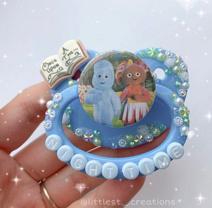 Deco adult pacifier available for remakes! this product will be made after ordering and could take 1 day to 2 weeks to complete at the very maximum! please dm me at @littlest._.creations for any questions!
