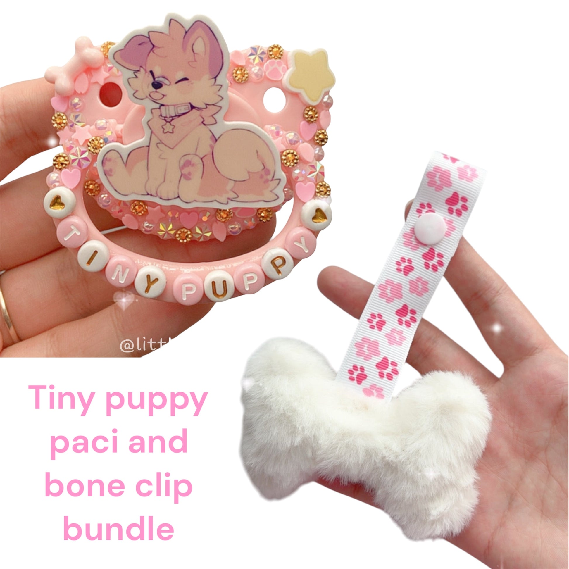 Tiny puppy paci and bone clip bundle!