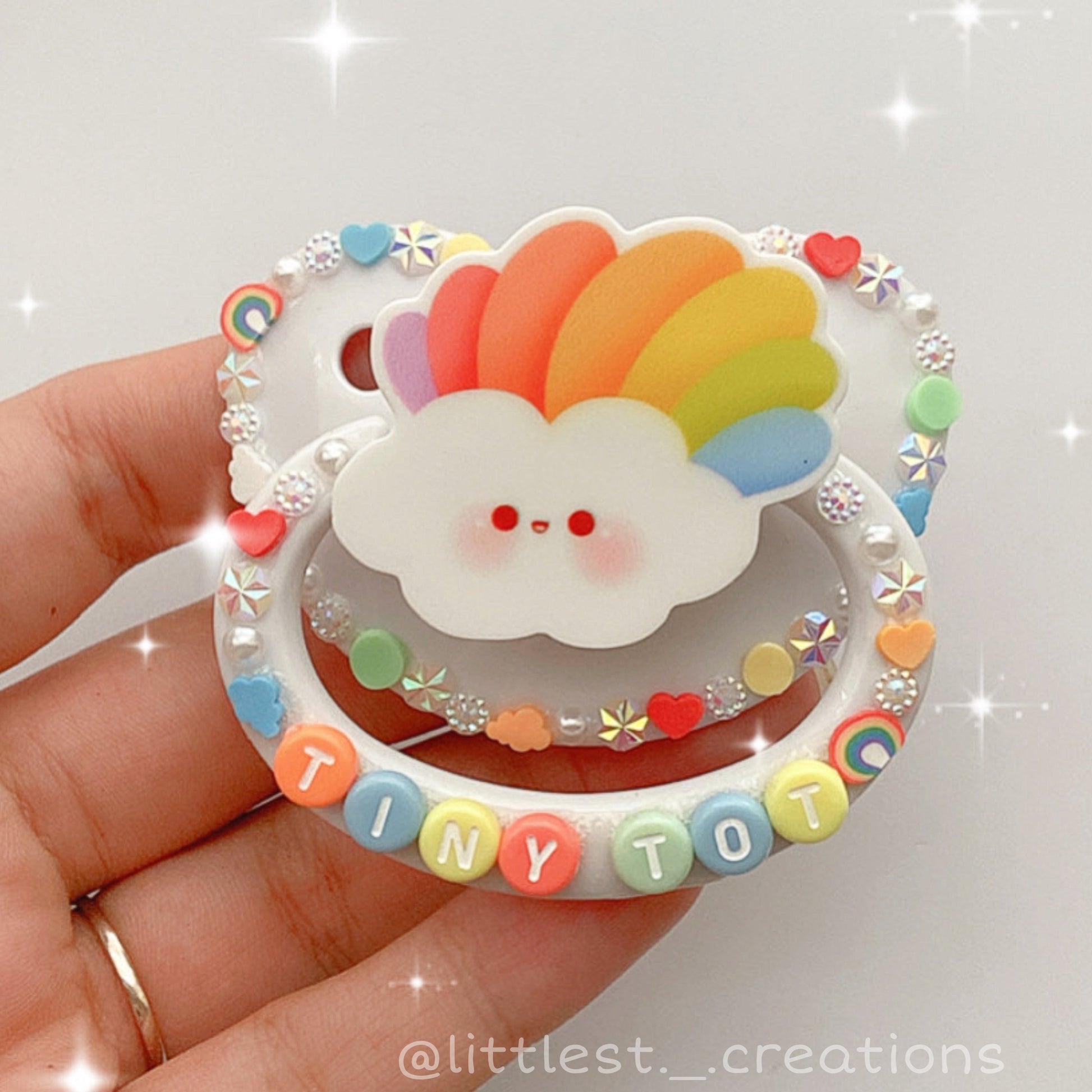 Deco adult pacifier available for remakes! this product will be made after ordering and could take 1 day to 2 weeks to complete at the very maximum! please dm me at @littlest._.creations for any questions!