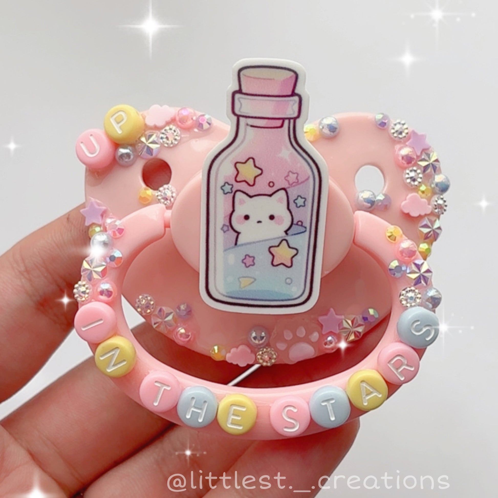 Deco adult pacifier available for remakes! this product will be made after ordering and could take 1 day to 2 weeks to complete at the very maximum! please dm me at @littlest._.creations for any questions!