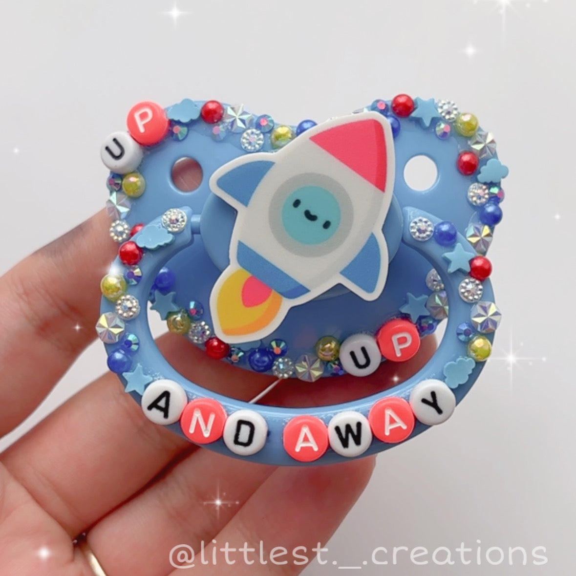 Deco adult pacifier available for remakes! this product will be made after ordering and could take 1 day to 2 weeks to complete at the very maximum! please dm me at @littlest._.creations for any questions!